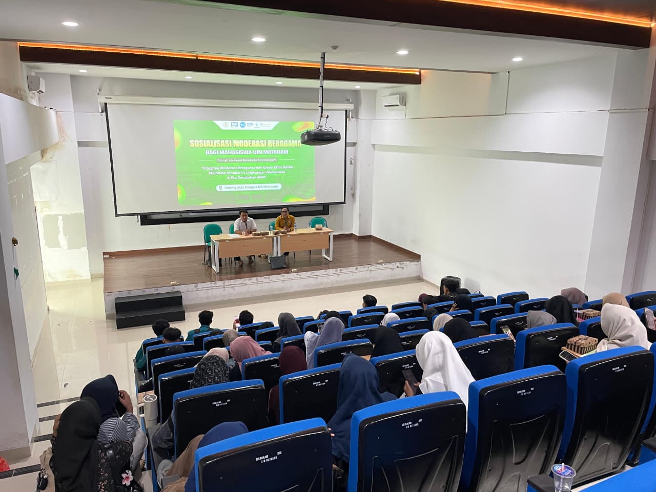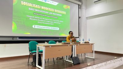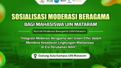 Rumah Moderasi Beragama Universitas Islam Negeri (UIN) Mataram kembali menyelenggarakan agenda sosialisasi moderasi beragama dengan mengusung tema “Integrasi Moderasi Beragama dan Green Ethic dalam Membina Kesadaran Lingkungan Mahasiswa di Era Perubahan Iklim”. Kegiatan ini bertempat di kampus UIN Mataram dan dihadiri oleh mahasiswa, Unit Kegiatan Mahasiswa (UKM), serta perwakilan SEMA-DEMA UIN Mataram.